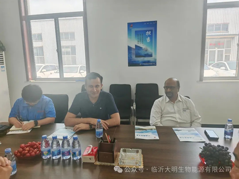 6月30日,来自印度的客户(左三)跨越千里,来到临沂大明生物能源进行实地考察,总经理马庆磊(右二)、国内销售经理费小磊(左二)、国际贸易销售经理卓明(右一)、国际贸易销售助理杨玉莹(左一)陪同并出席交流会,为双方未来的合作注入全新活力。